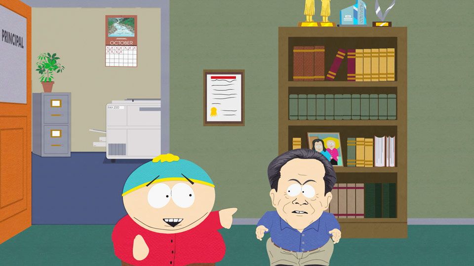 Dr. David Nelson tries to talk to Cartman about his intolerance; Cartman still can't stop laughing. test