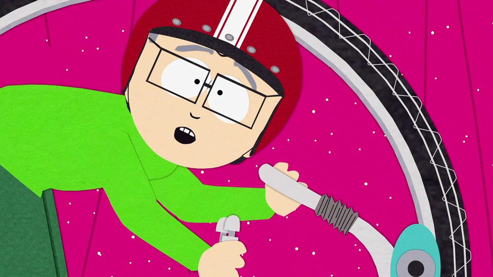 Mr. Garrison finally reveals IT to the masses. The strange motions required to operate the vehicle still beat what you have to go through at the airport.